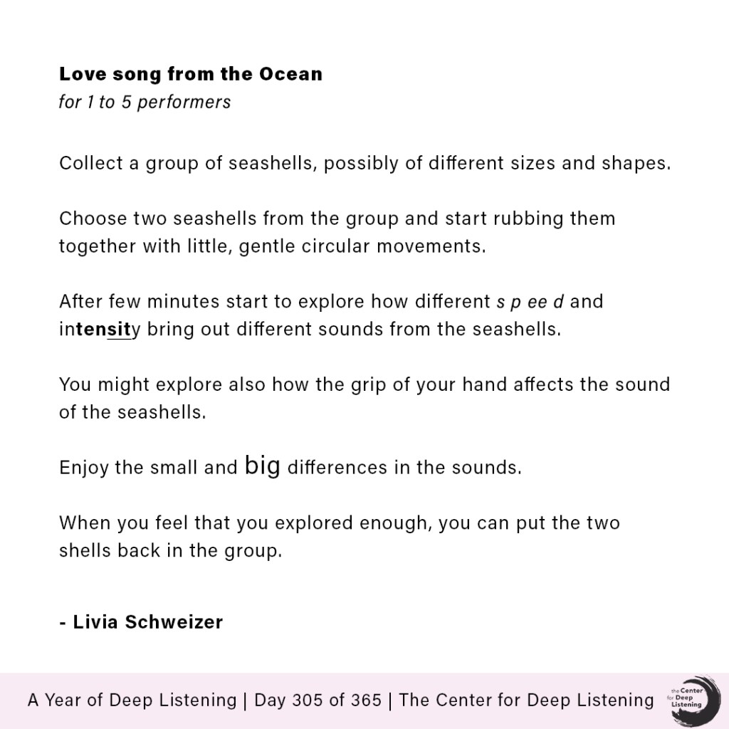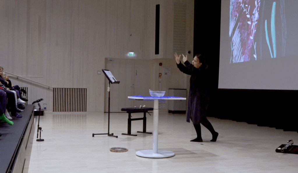 The first version of the piece was presented in a version for solo flutist/performer for a children audience (7-11 years old) in occasion of the contemporary music festival Uuden Musiikkin Lokakuu in Oulu (FI). Different flutes, seashells, words and the presence and hum of almost 1500 children were part of this version, which shape will it take next?